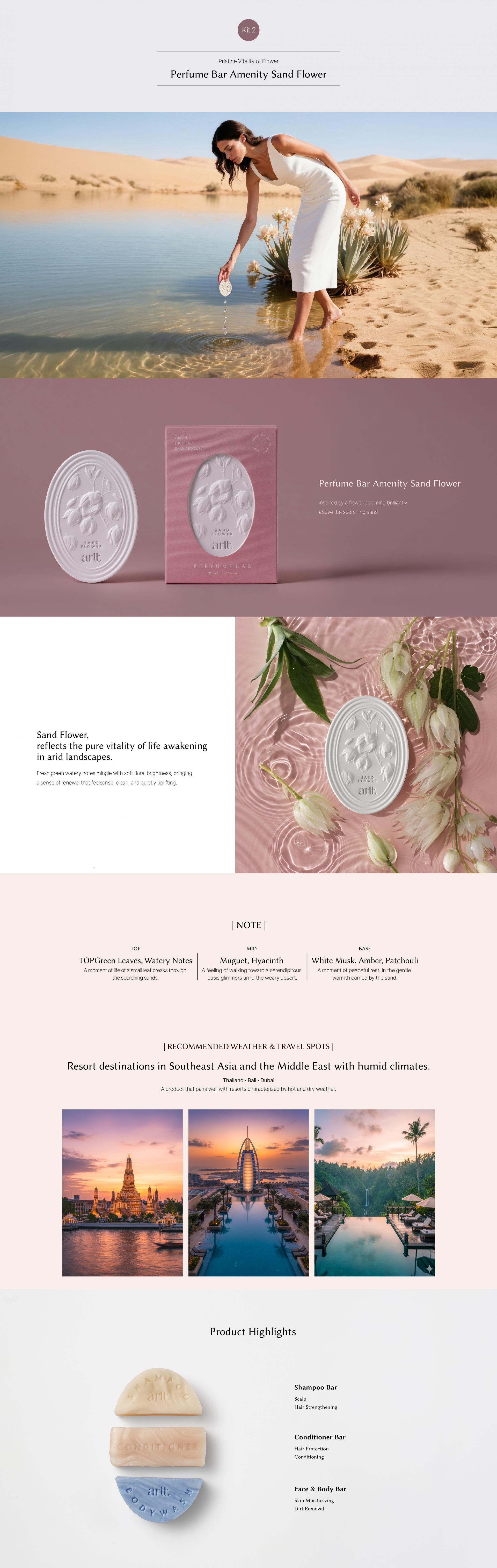 (Sand) A refreshing green watery accord of lily of the valley and hyacinth, evoking purity and vitality.