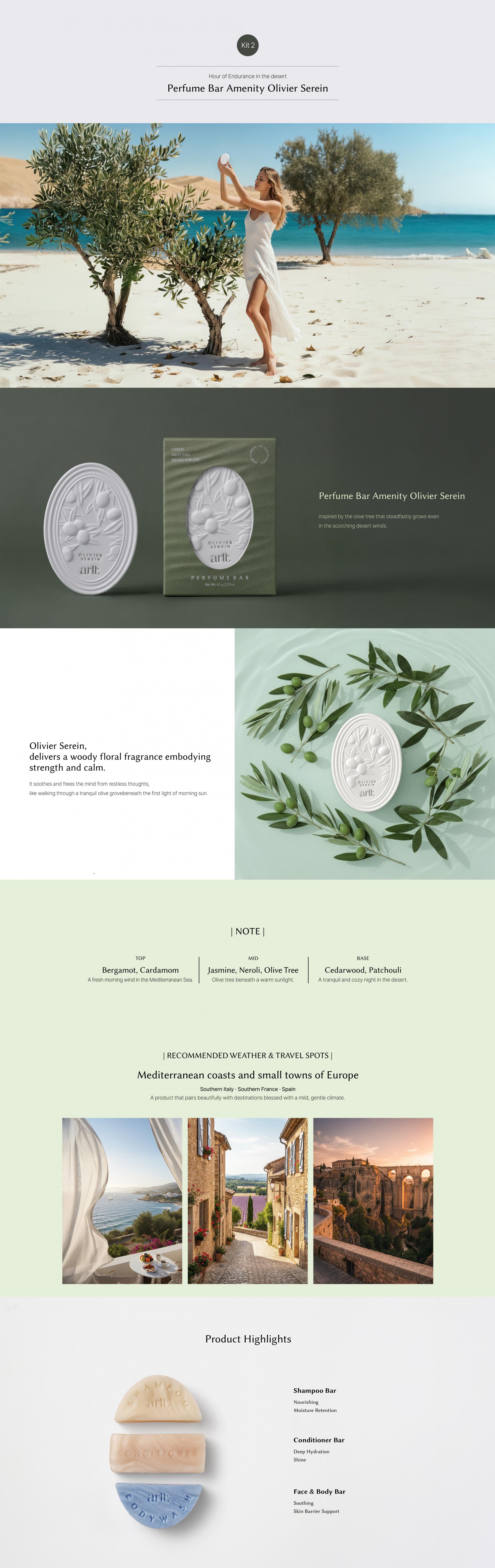 (Olivier) A sophisticated woody floral harmony of olive tree, bergamot, and neroli with a subtle bitter freshness.
